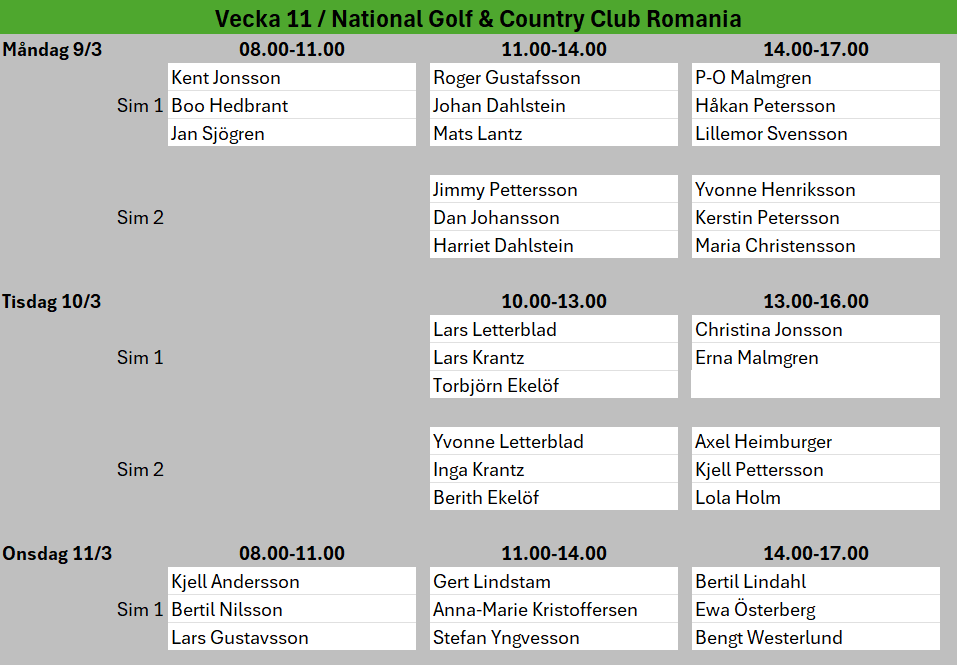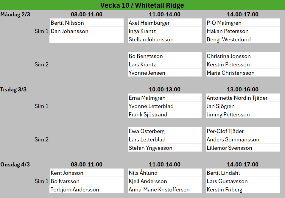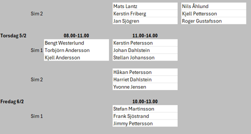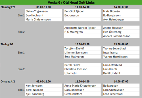 Vecka 7 är det Sportlov, då får ni boka egna tider eller åka skidor. :-)