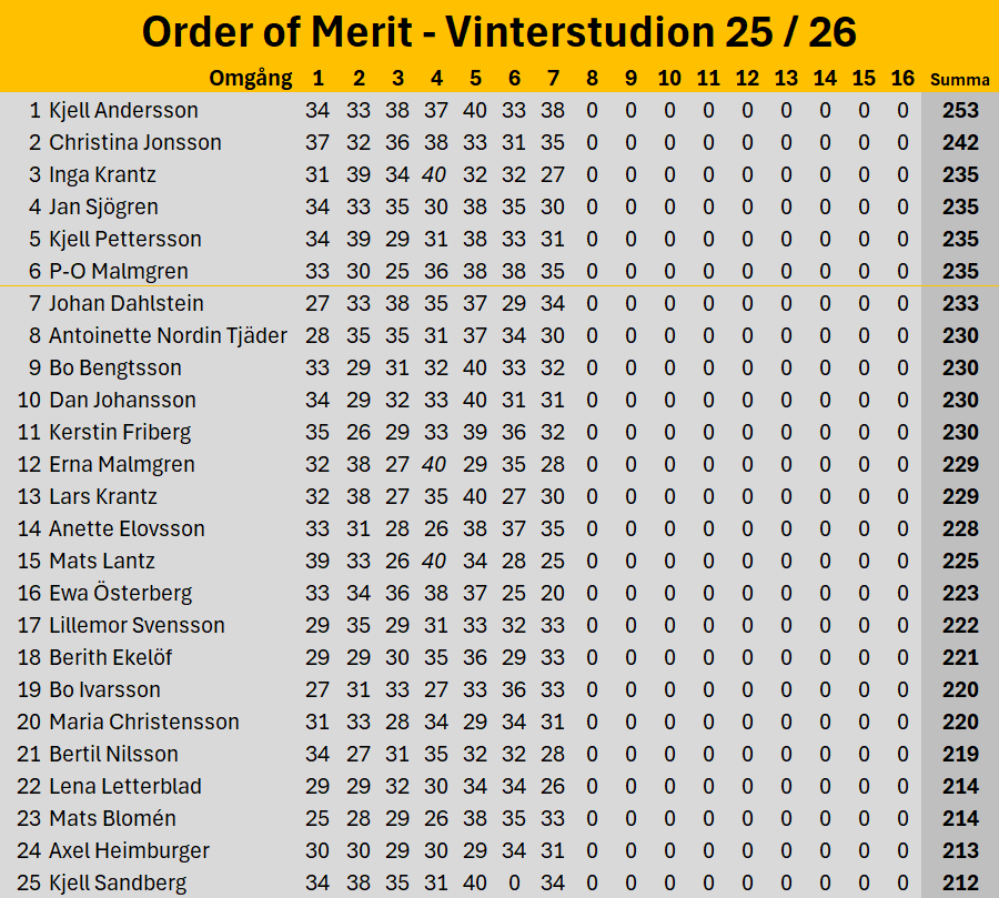 Här kan du följa tävlingen, Resultatlista. Kom dock ihåg att det är Order o Merit nedan som är officiell resultatlista!