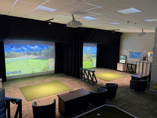 Spela simulatorgolf av högsta klass i mysig miljö.
