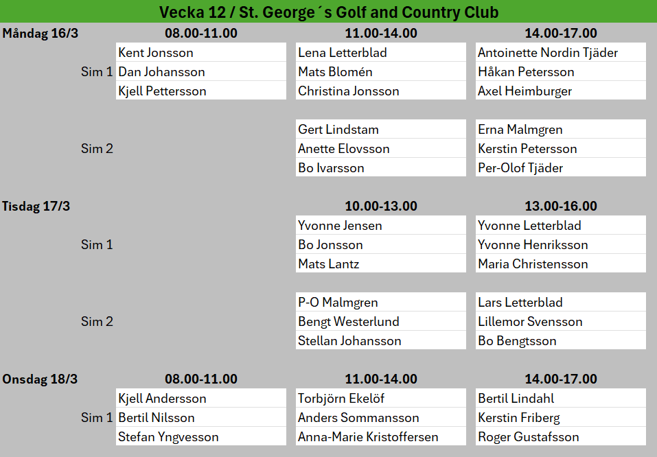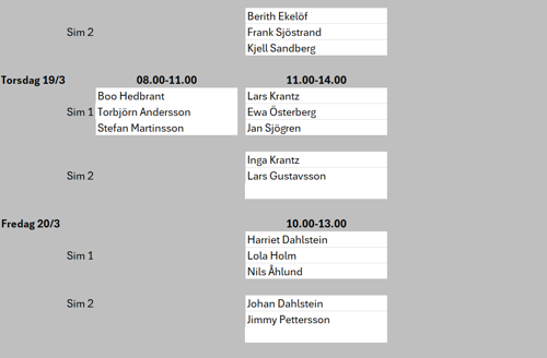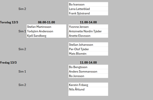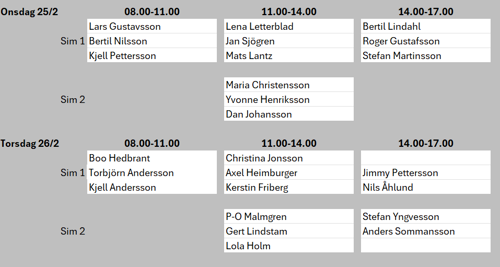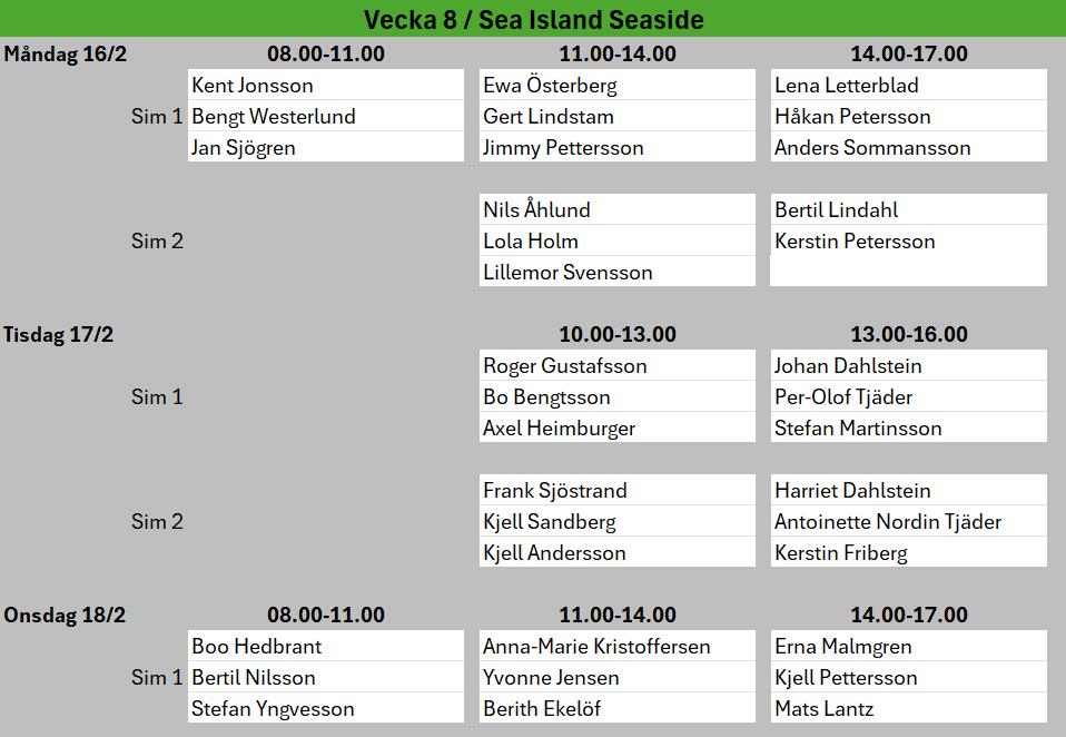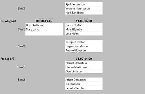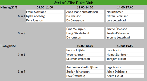 Vecka 7 är det Sportlov, då får ni boka egna tider eller åka skidor. :-)